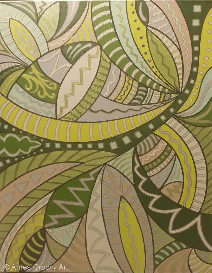 I prefer to paint in acrylics because they dry quickly and can be easily manipulated. I paint on canvas and wood and other sculptural forms and I like to embellish the surface of a painting with bits and pieces of sparkly findings. I love to paint and find it to be very relaxing.